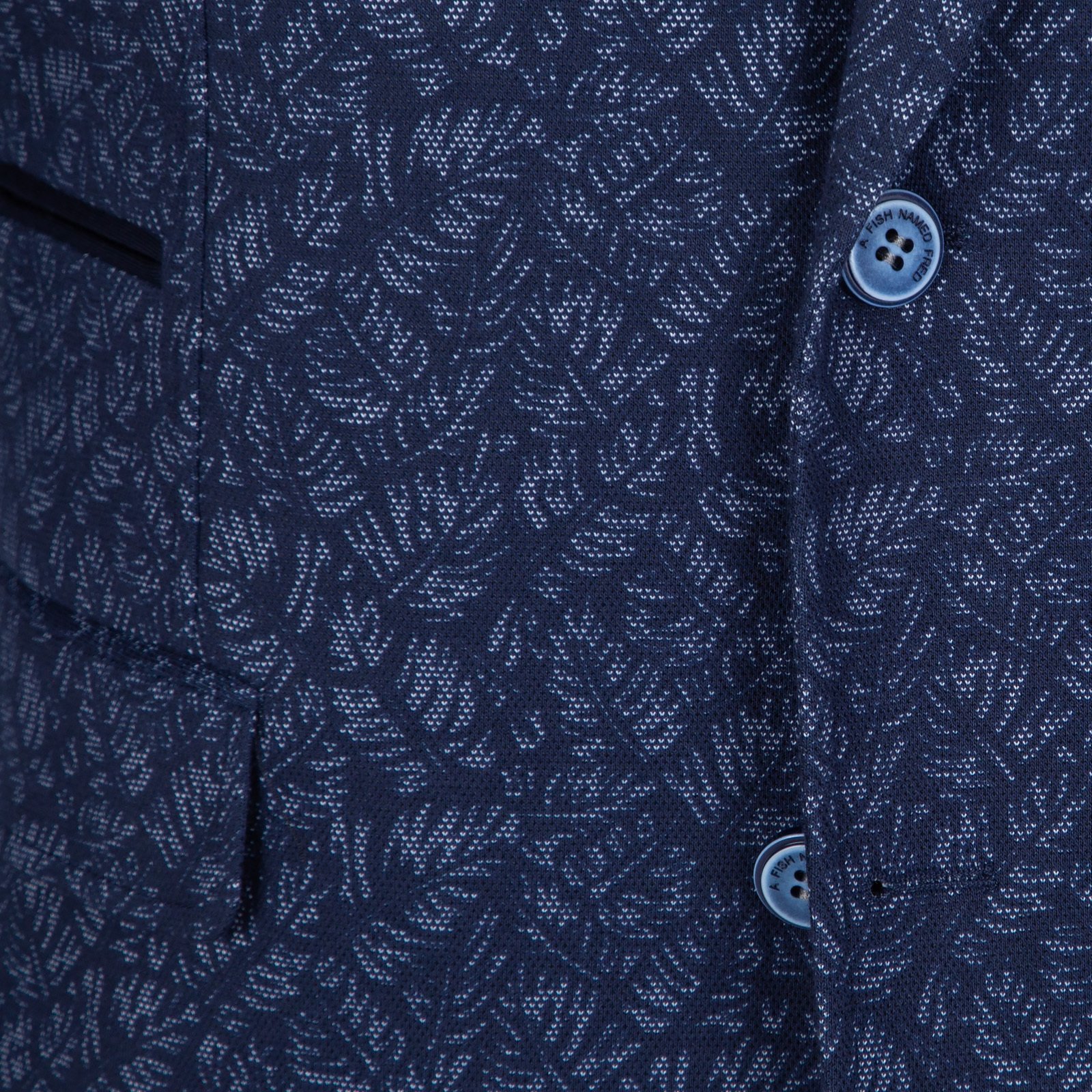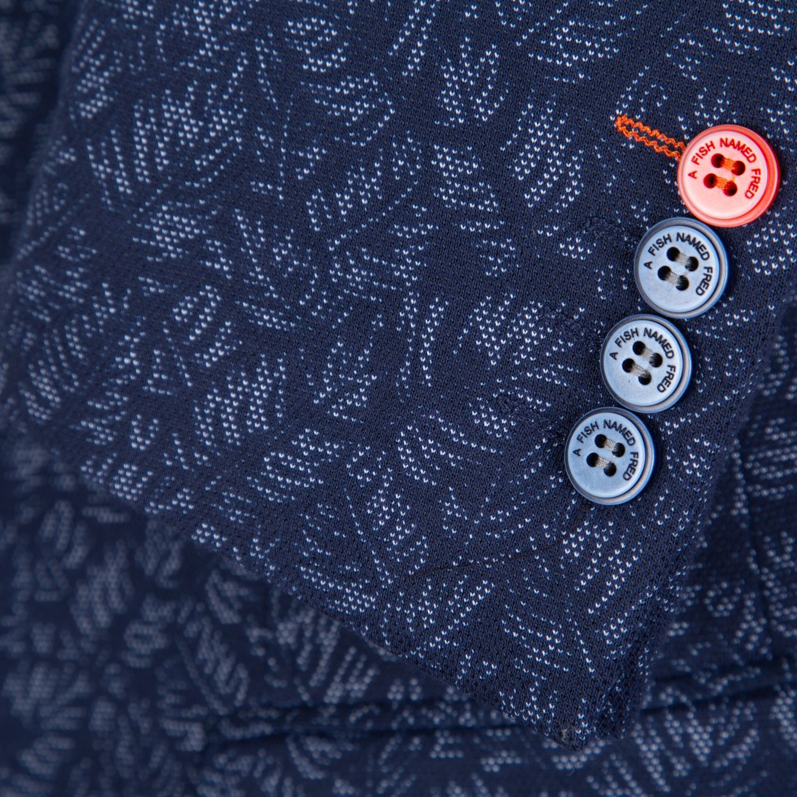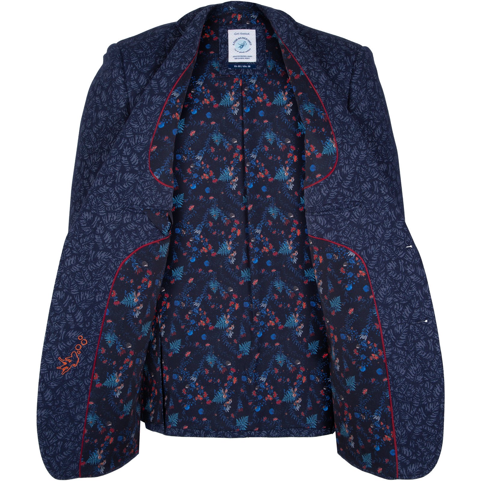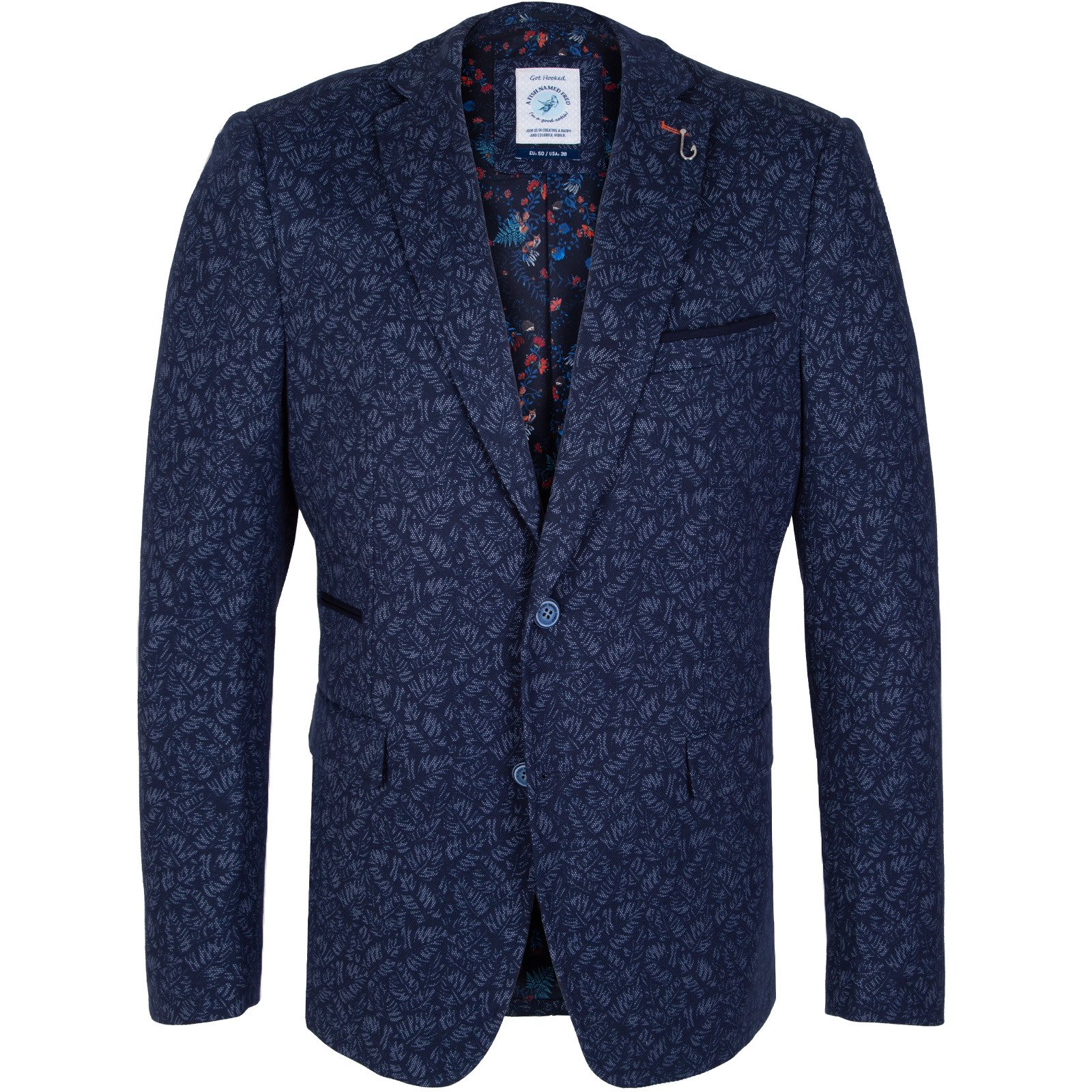 Full of little details and clever trims, this colourful stretch jacquard knit blazer is a fun piece that is so versatile. Features colourful print lining, with internal pockets, a secret pocket square, a fish hook lapel pin and feature contrast button detail.