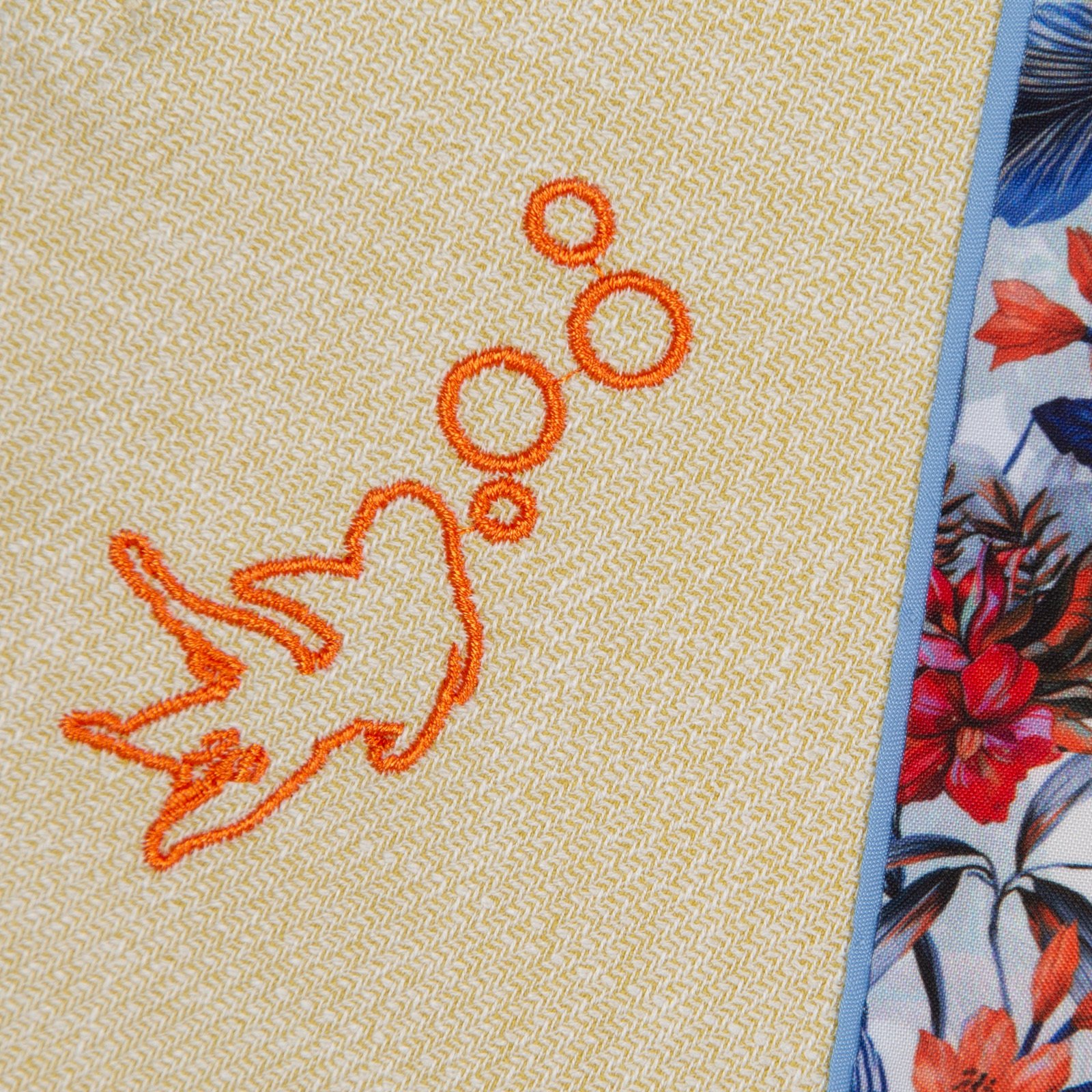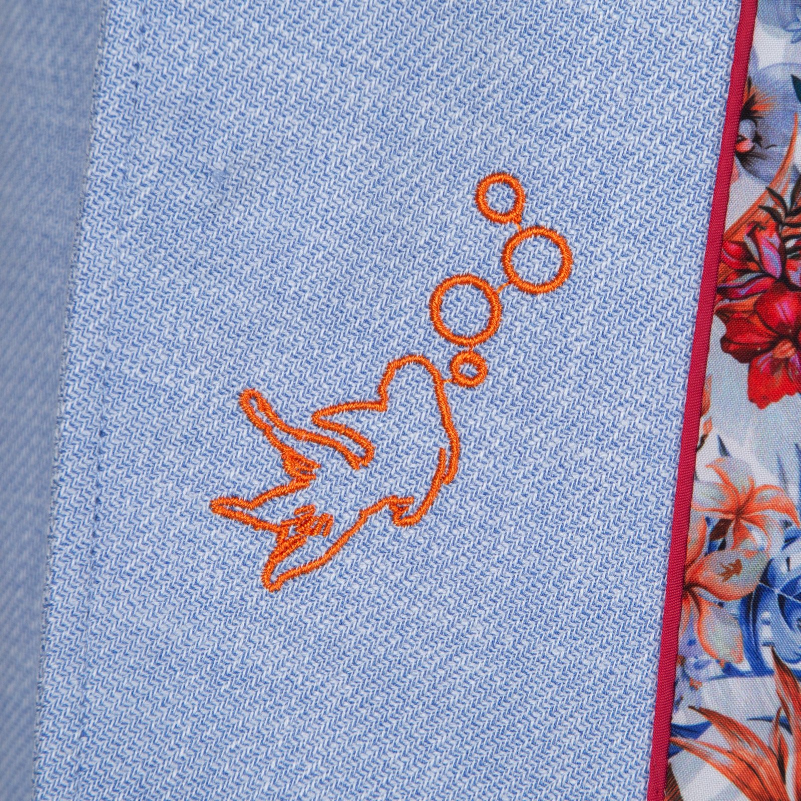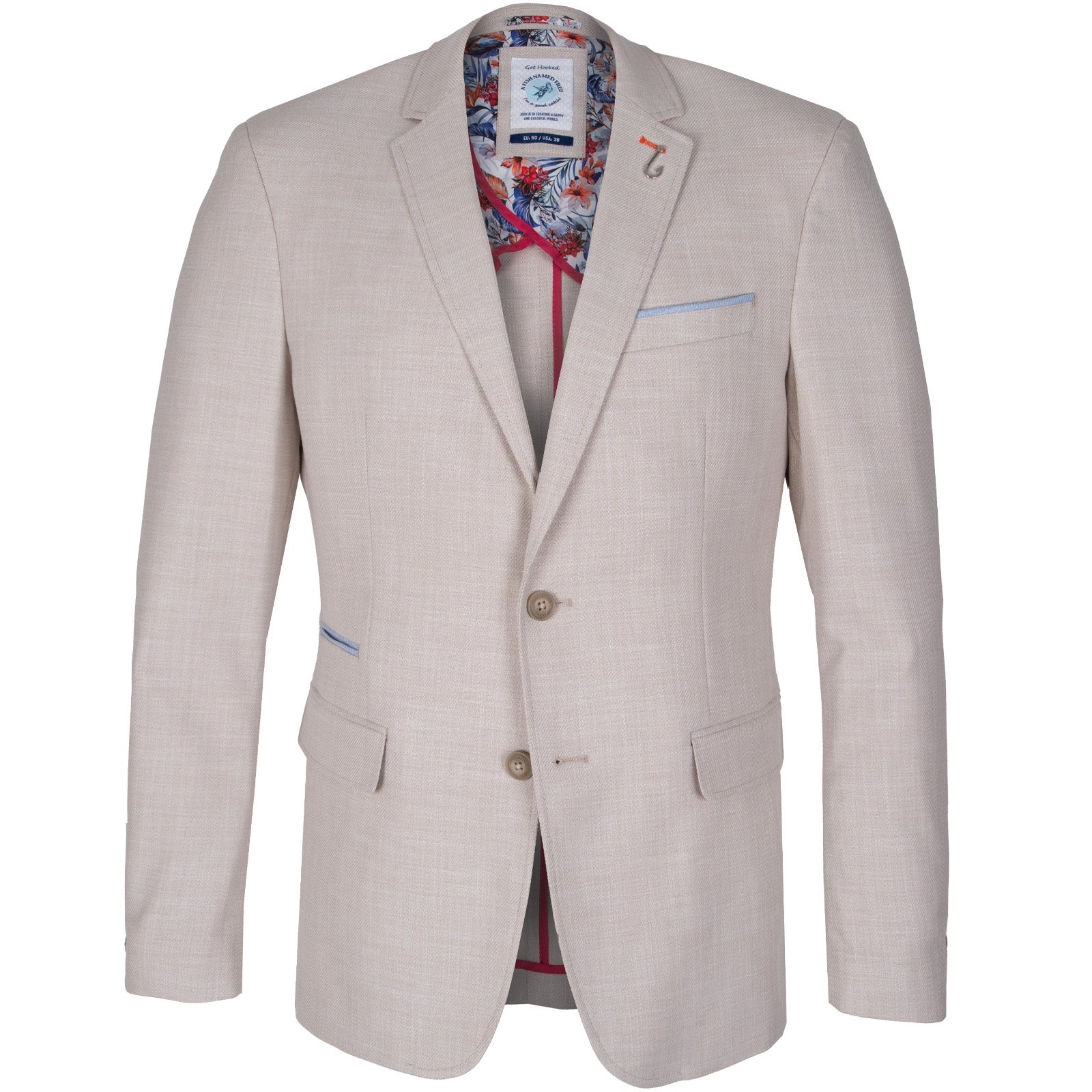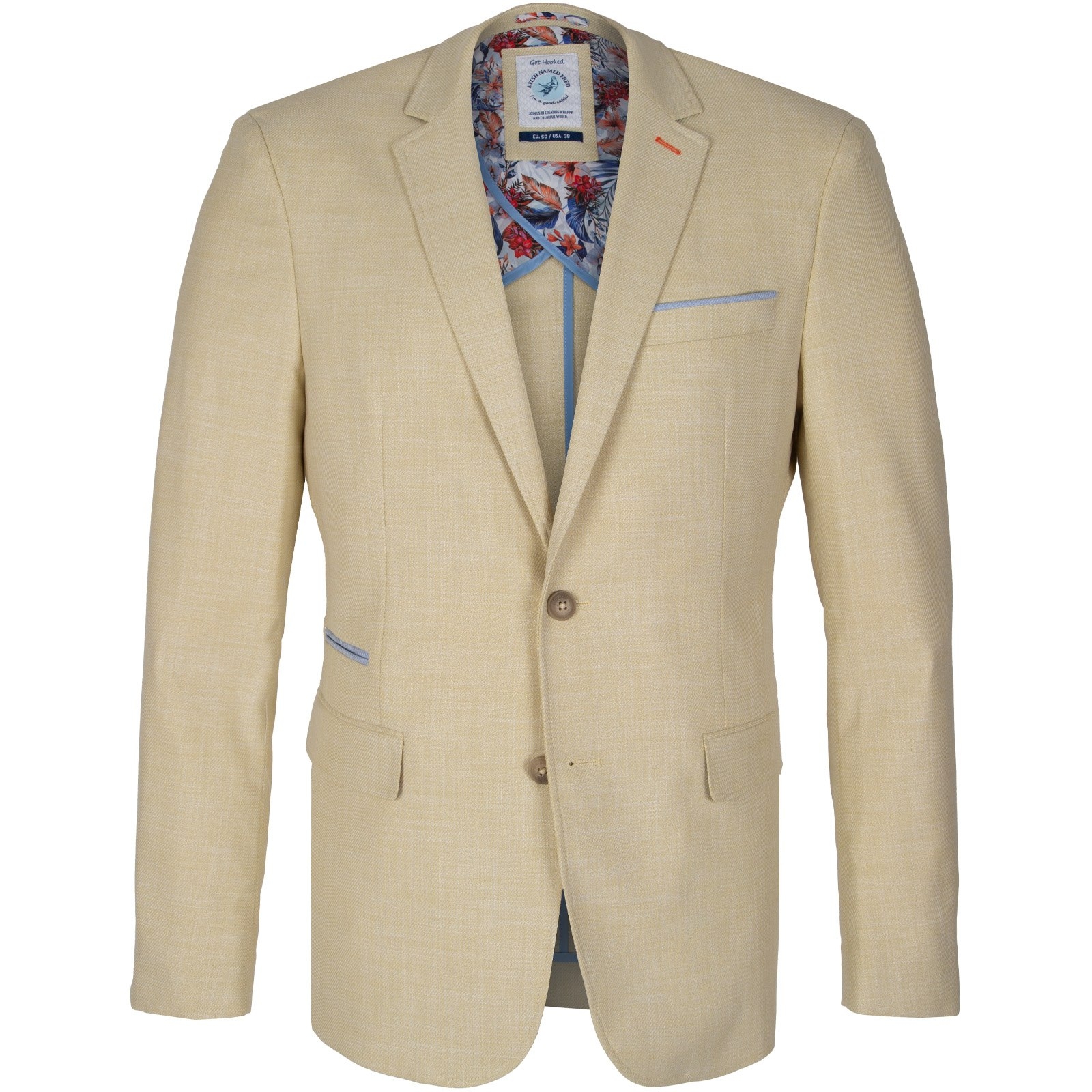 Full of little details and clever trims, this colourful light-weight blazer is a fun piece that is so versatile. Features colourful print lining, with internal pockets, a secret pocket square, a fish hook lapel pin and feature contrast button detail.
