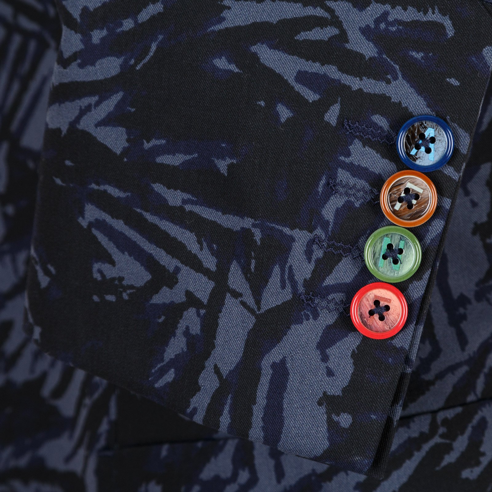 Features colourful print lining and secret pocket square, with internal pockets and feature buttons.
