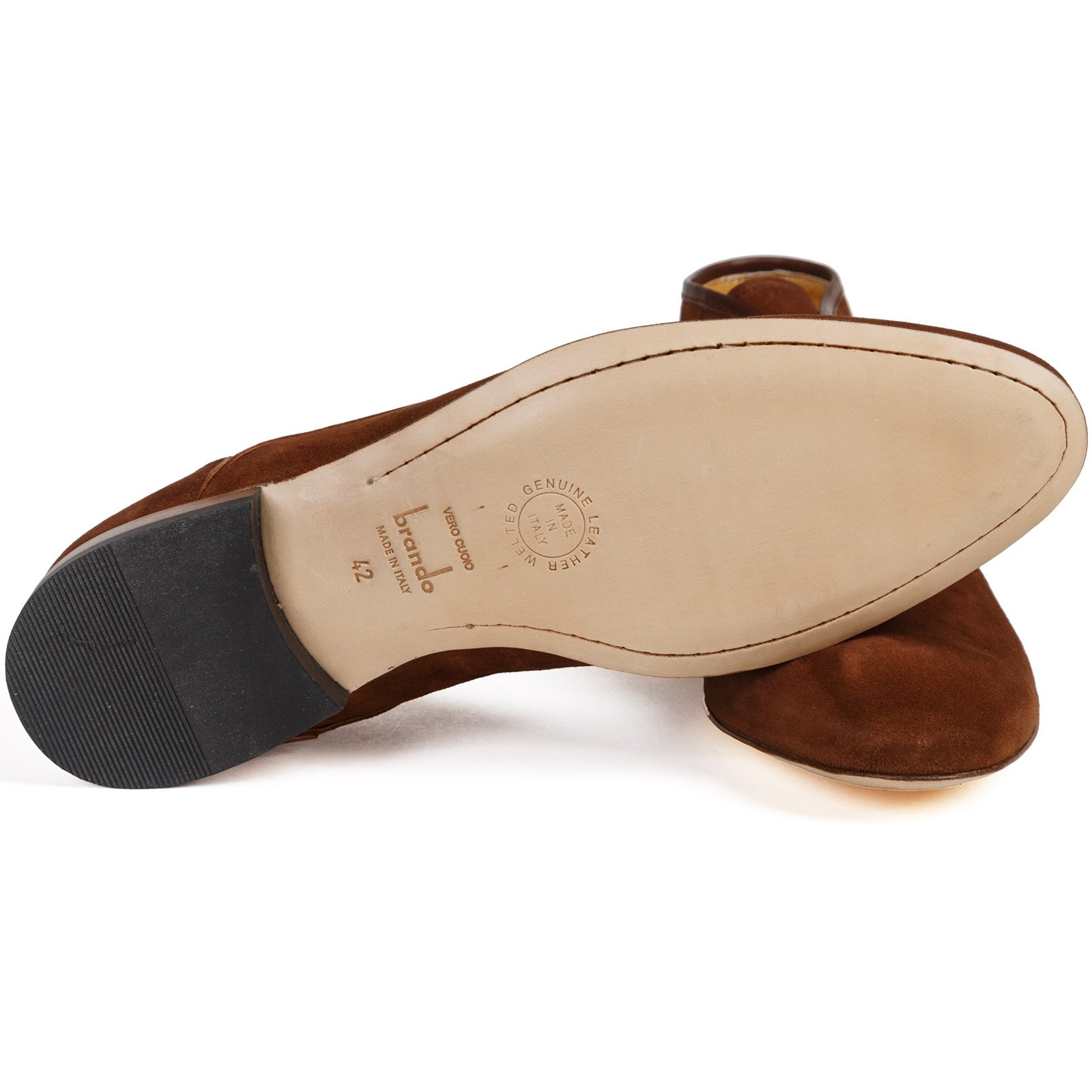 100% leather uppers and stitched leather soles.
