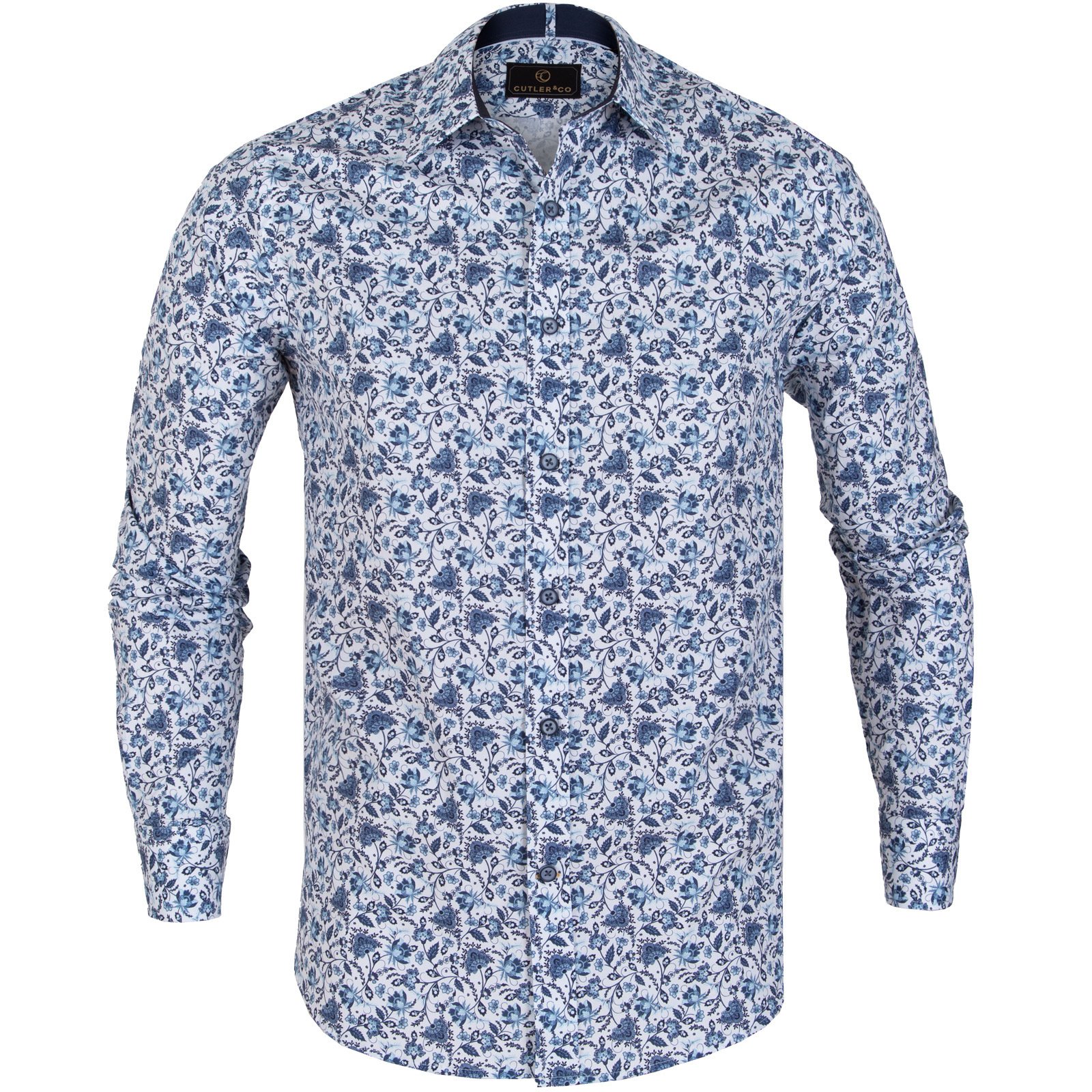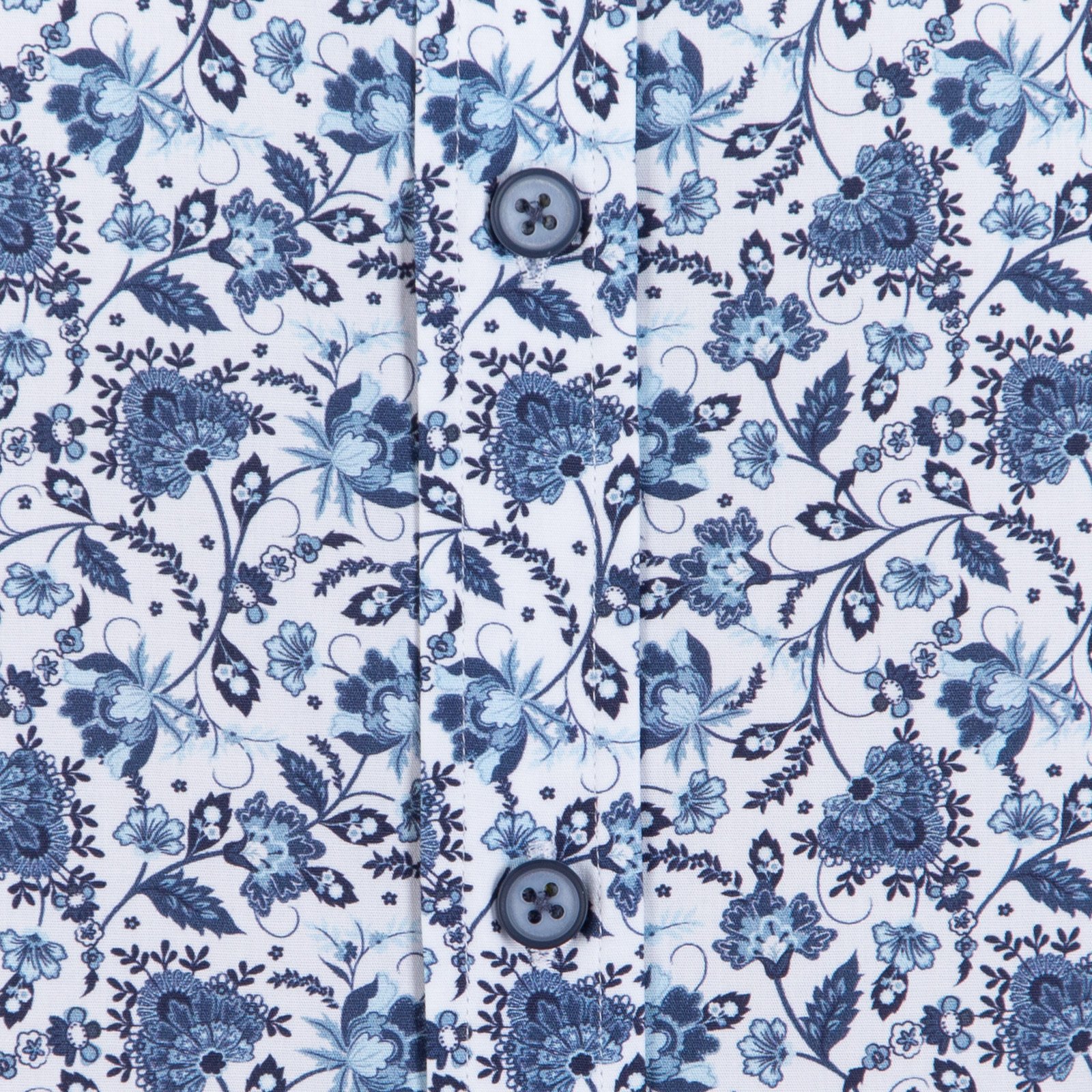 Soft casual long-sleeve shirt with a blue floral vine print in stretch cotton. Darts in the back for a tapered fit.