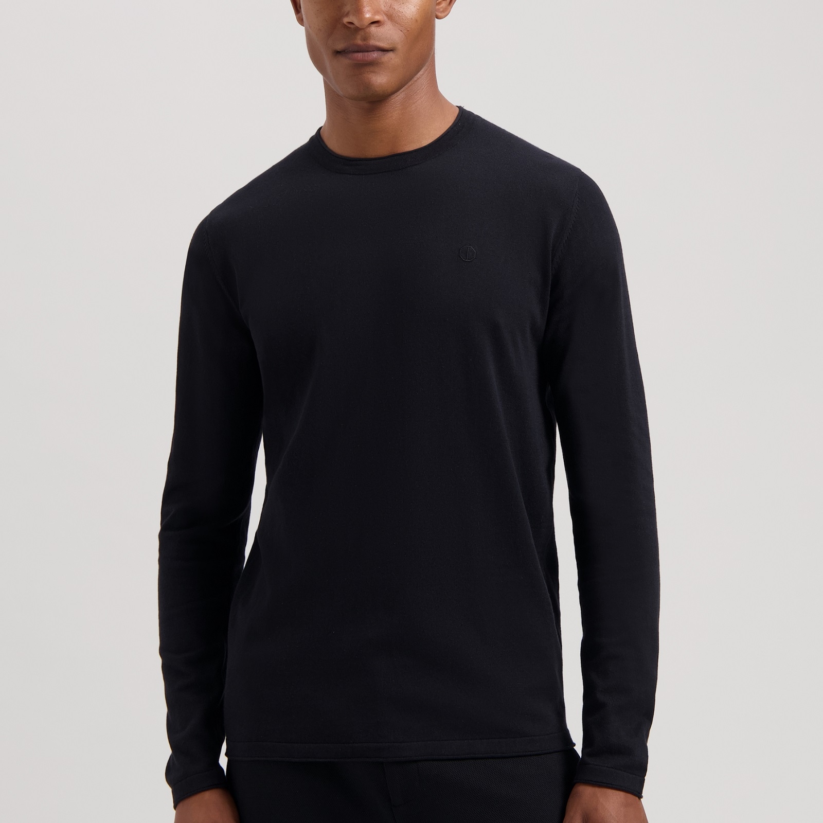 Constructed from soft cotton yarn, this knit crew neck pullover features sutle detail around the sleeve head, and a subtle logo embroidered on the chest.