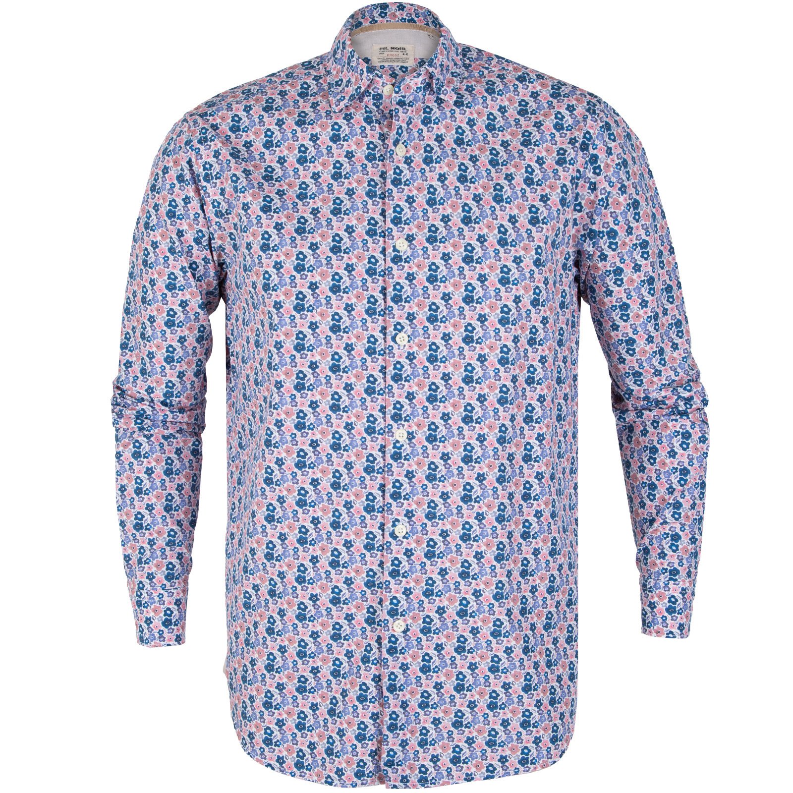 A tapered fit casual shirt in a soft cotton with a floral print and subtle trim detail. Features darts in the back for a tapered fit, and soft fashion under-button down collar.