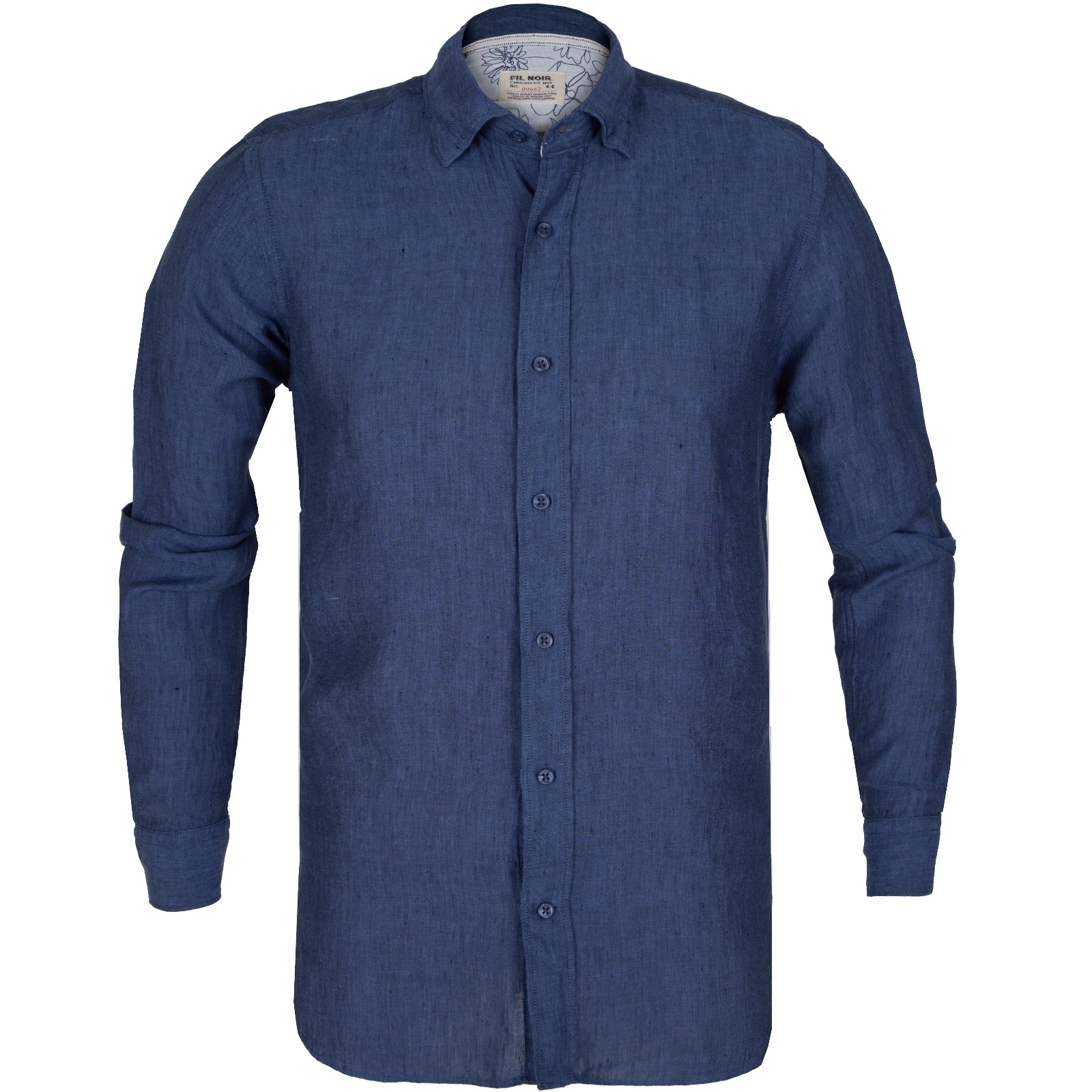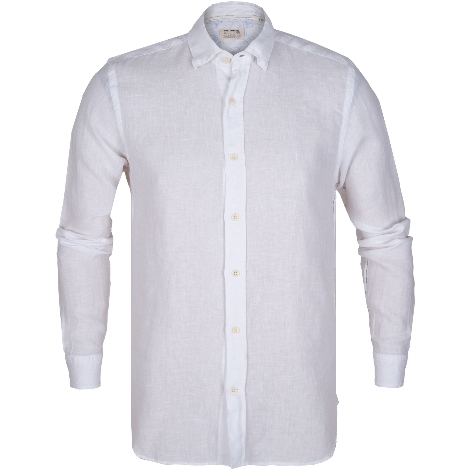 A relaxed casual shirt in a luxury soft wash Italian linen with floral trim inside cuff. Features darts in the back for a tapered fit, and soft fashion under-button down collar.