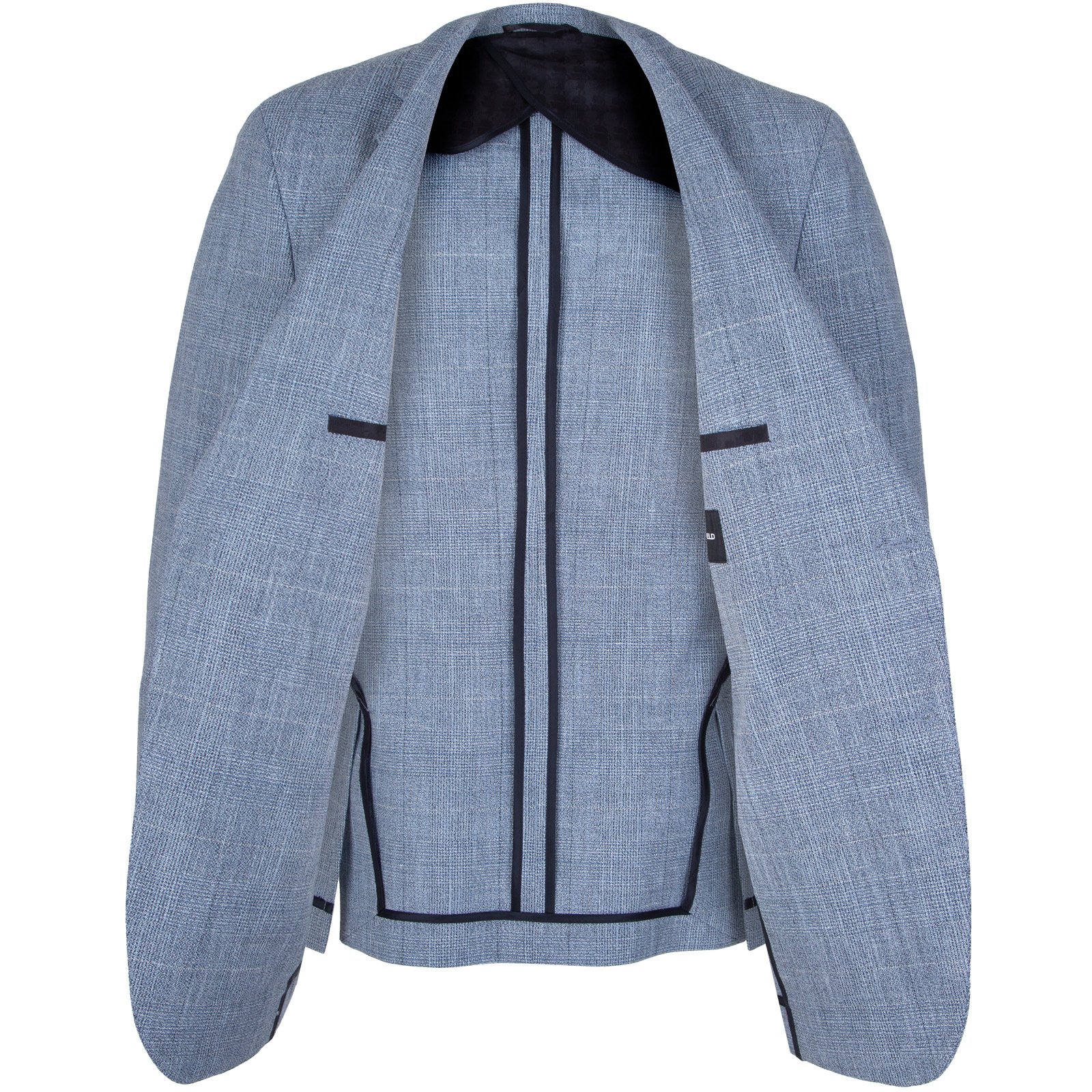 Tailored fit two-button blazer, crafted in a luxurious soft linen blend stretch fabric with a subtle tonal check. Half-lined with internal pockets. Wear it casually with a fine knit pullover and jeans, or dress it up with a white cotton shirt and navy dress trousers for work.