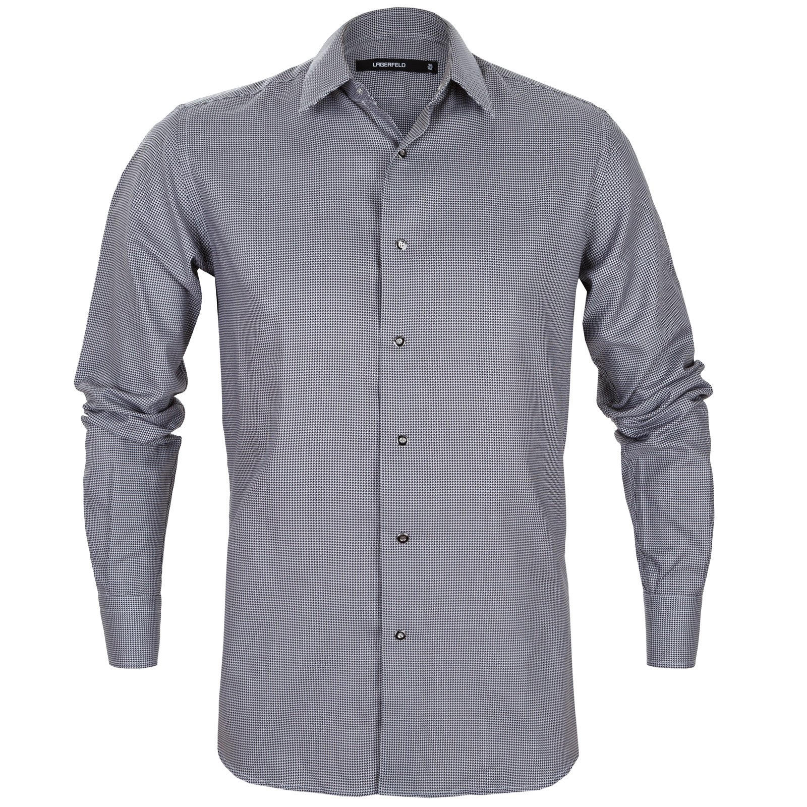 Luxury cotton dress shirt with a micro houndstooth weave. Features darts in the back for a tapered fit, and removeable bones in the collar.