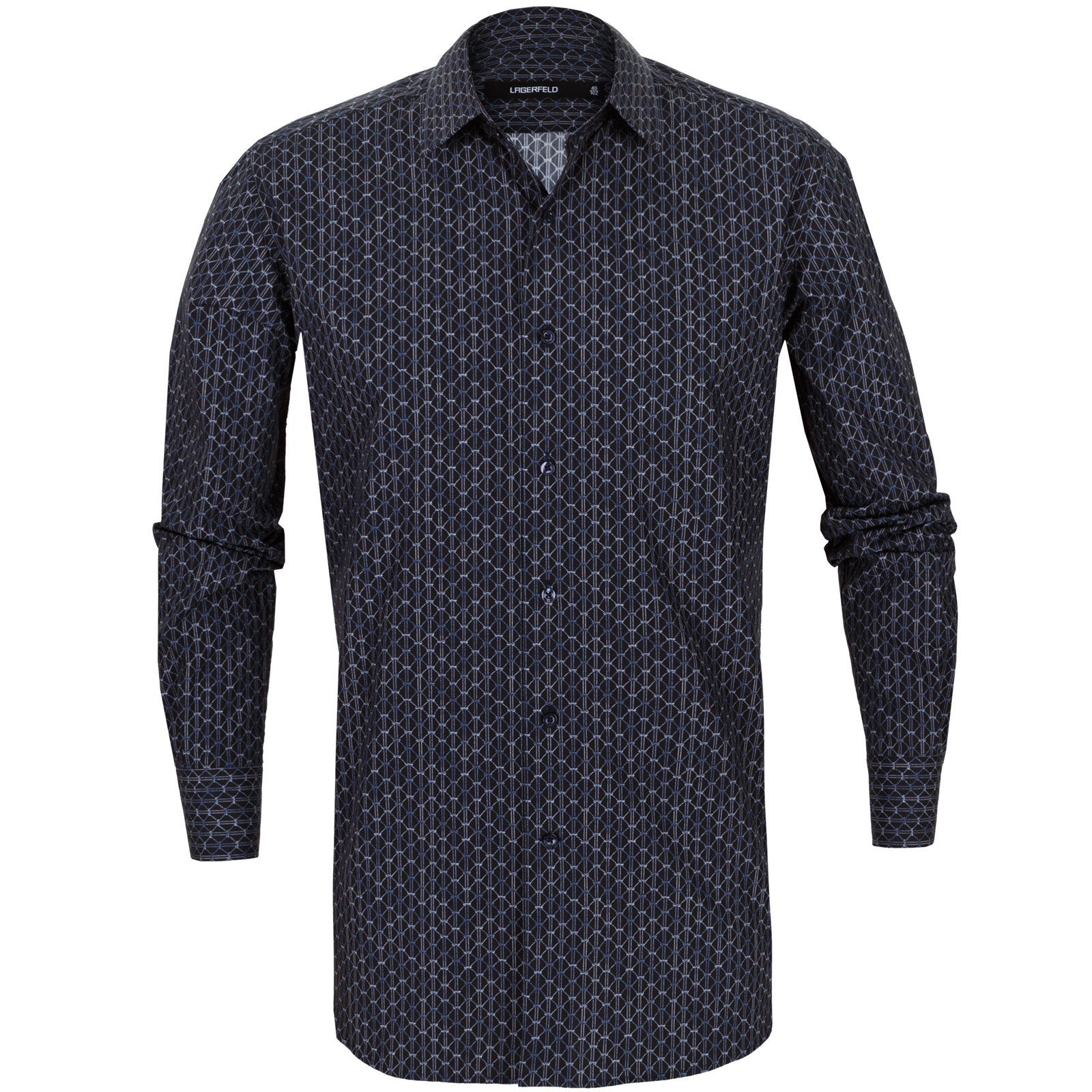 Subtle geometric print on a luxury cotton. Features darts in the back for a tapered fit, and removeable bones in the collar.