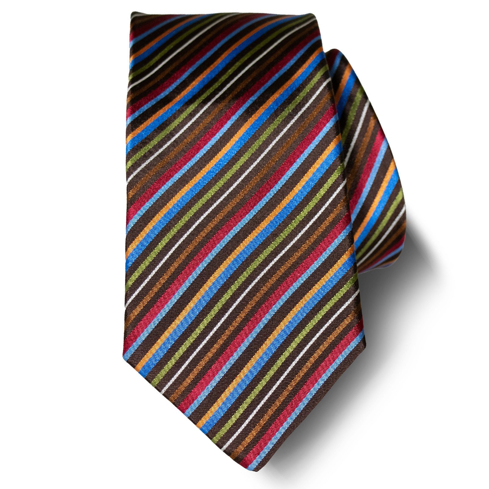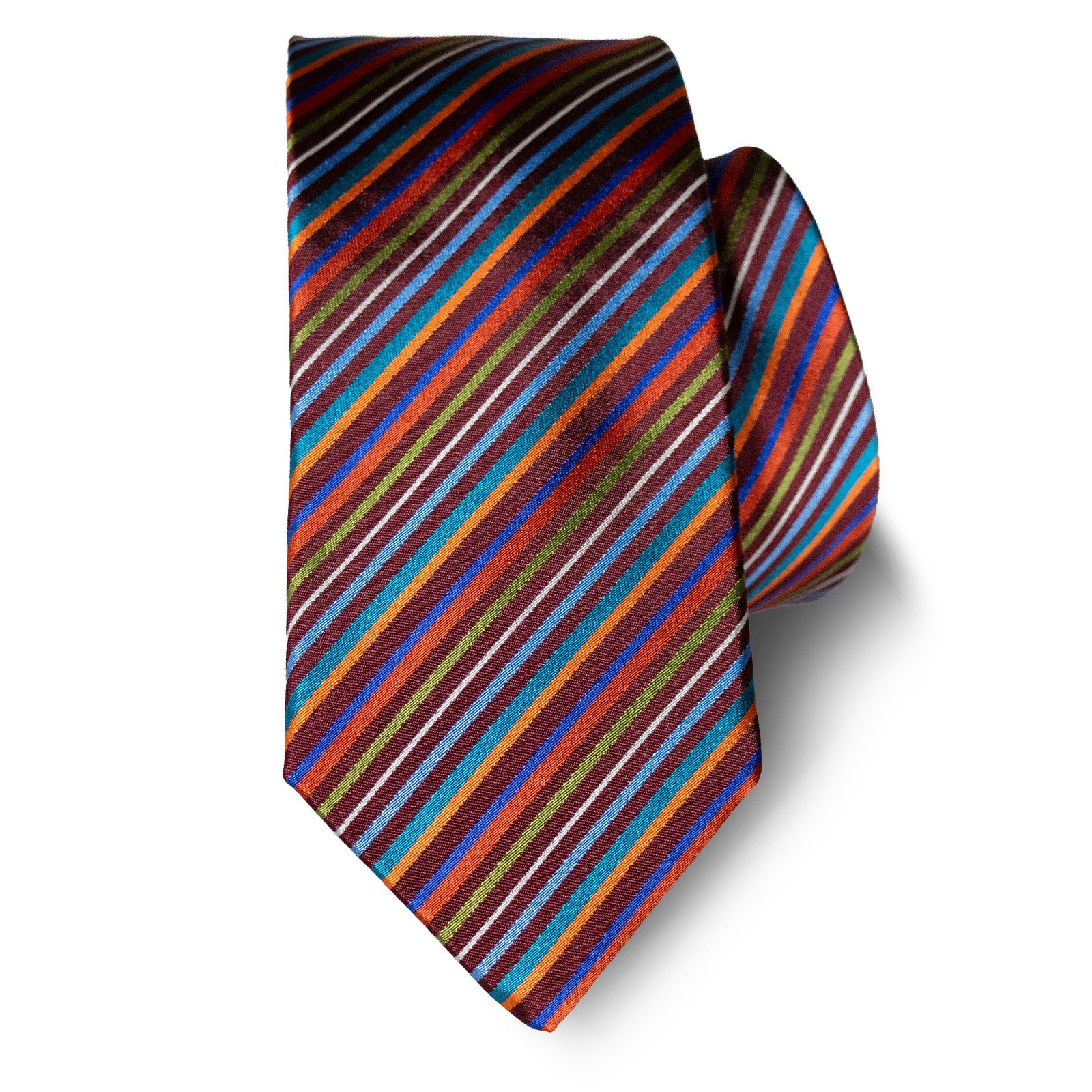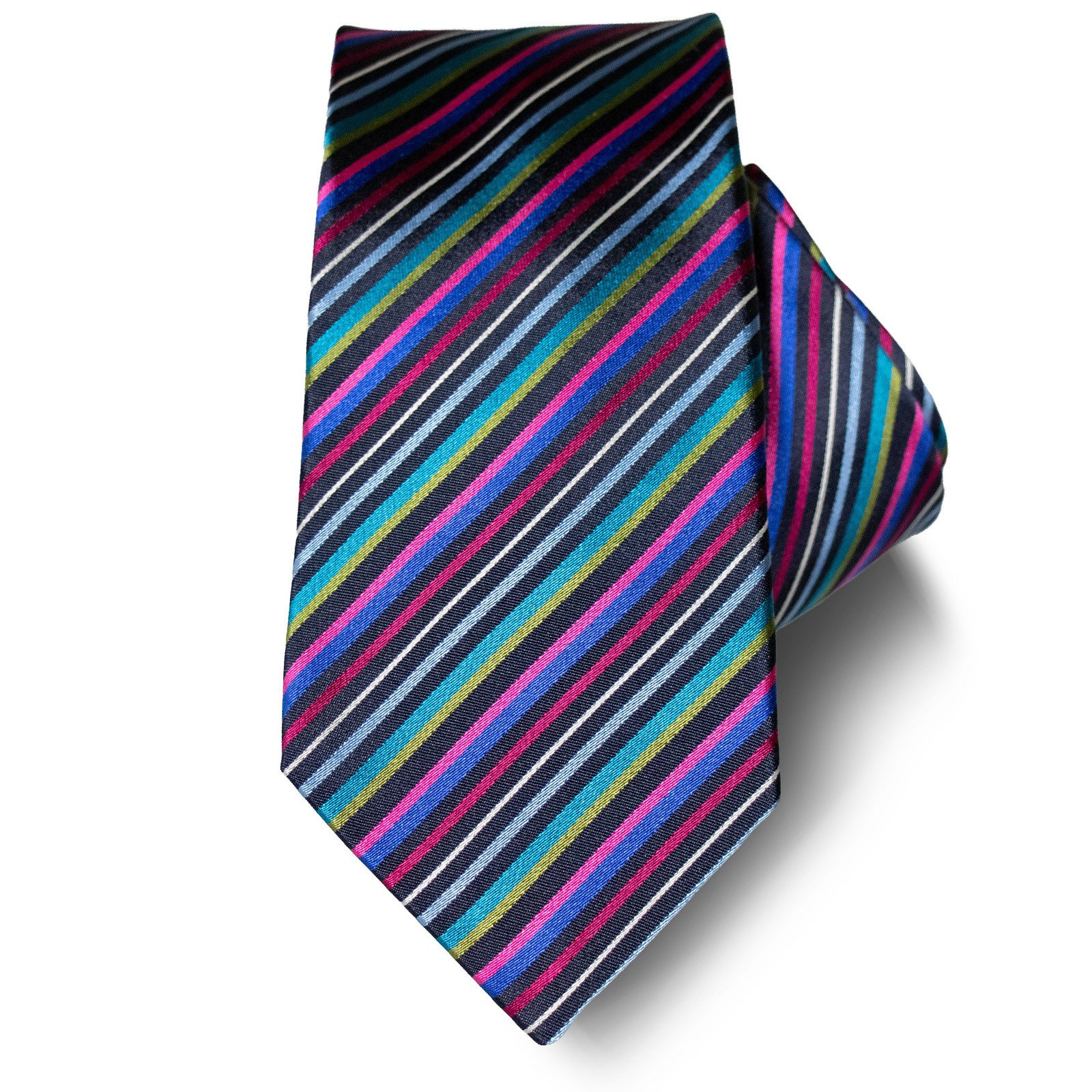 Add a bit of flair with this colourful, limited edition, luxury pure silk tie. In exclusive fabric sourced from some of the finest silk suppliers in Italy, this multi-coloured stripe is quite unique. Add a colourful pocket square for a finishing touch. It's your personal style that makes the difference.