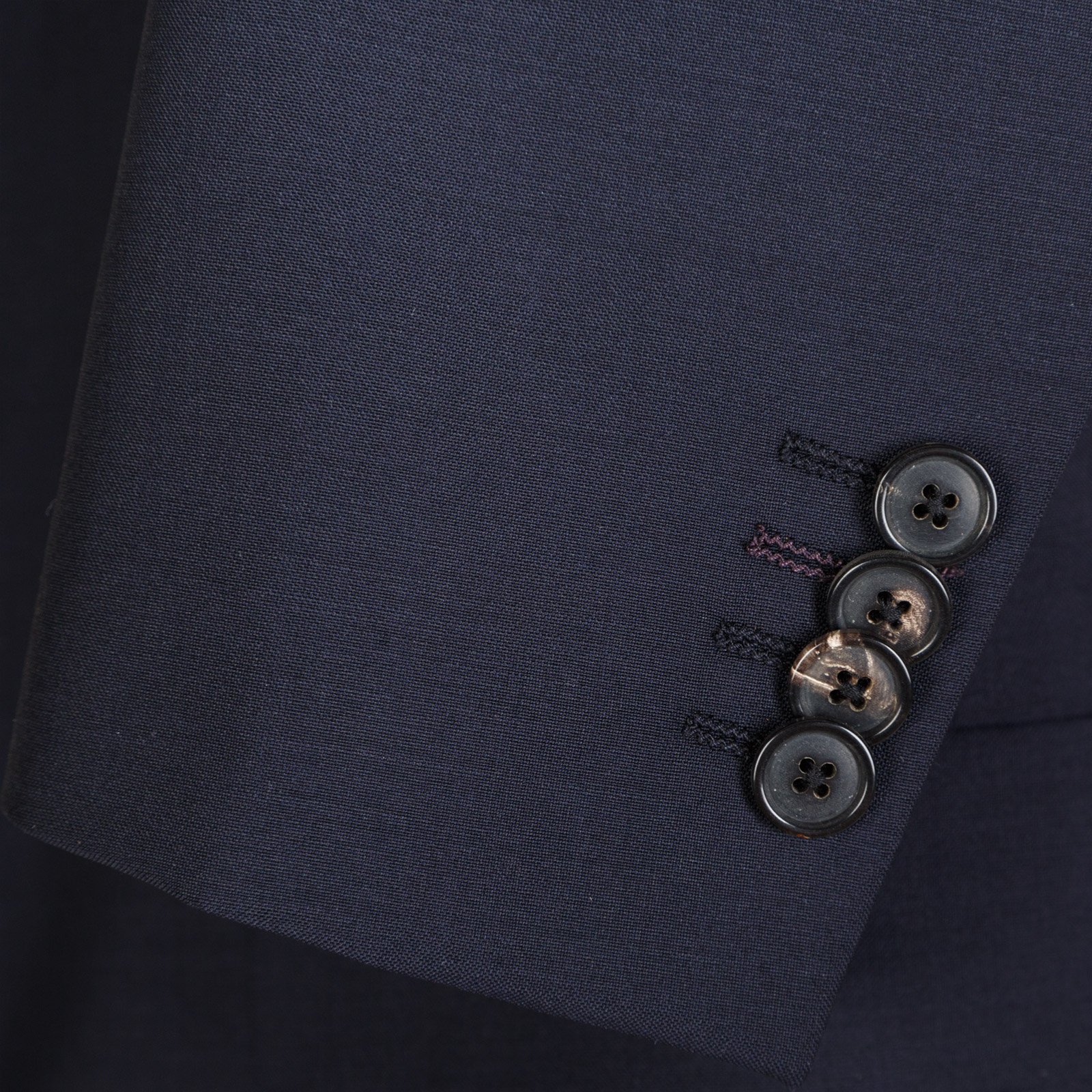 Jacket - 2 button fastening, flap pockets, non-functioning cuffs. Fully lined with rear double vent.