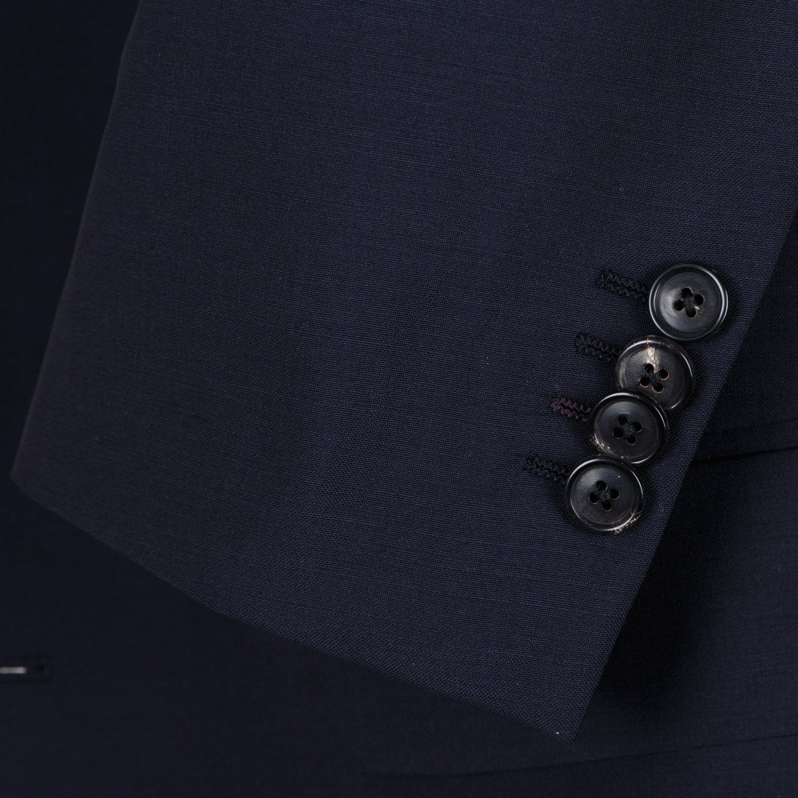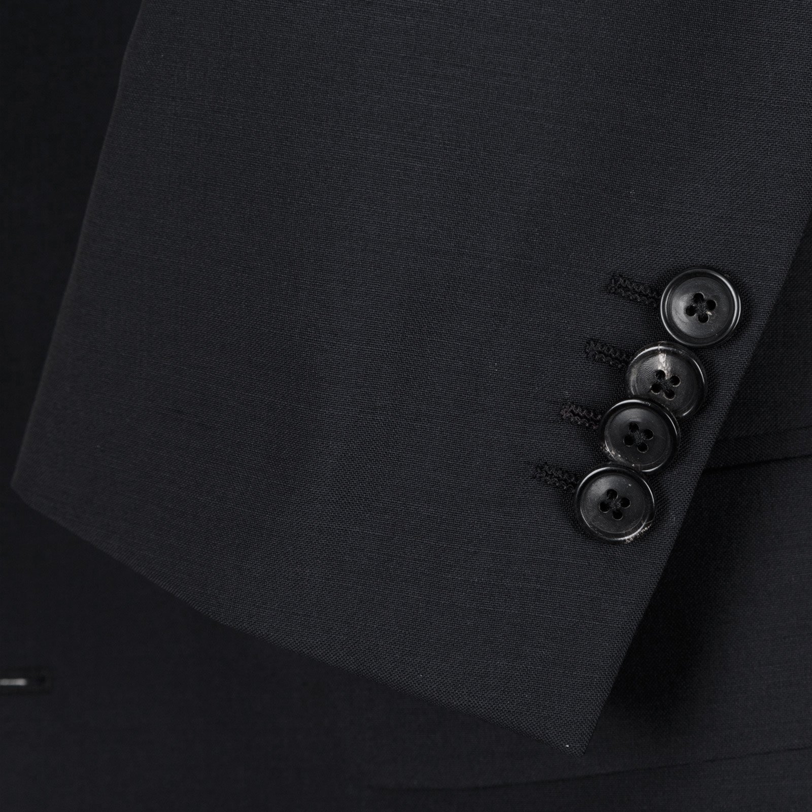 Jacket - 2 button fastening, flap pockets, non-functioning cuffs. Fully lined with rear double vent.
