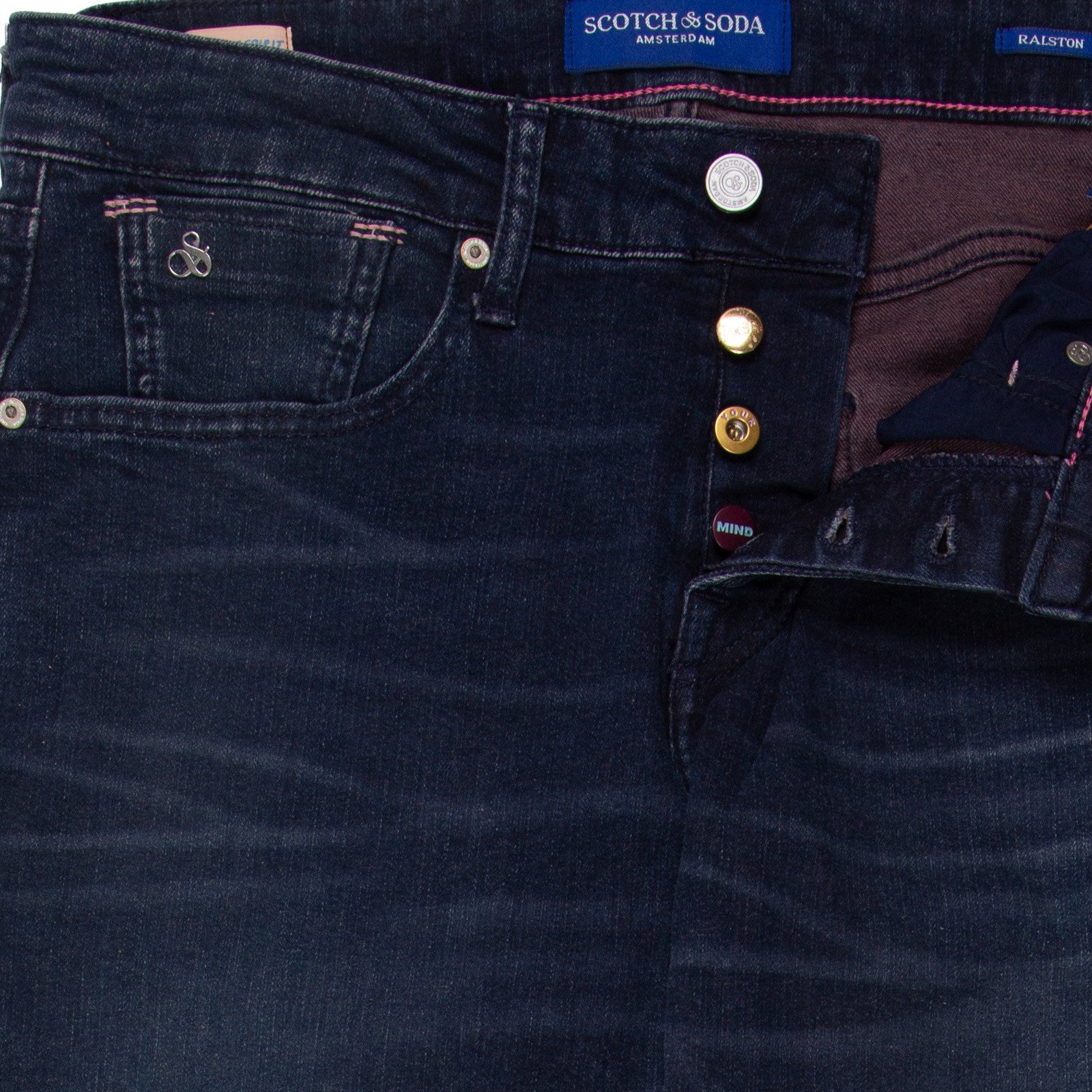 Crafted in stretch denim with a unique wash, these regular slim fit jeans are versatile classic. Featuring multi-coloured button fly, and signature XXX stitching on rear pocket.