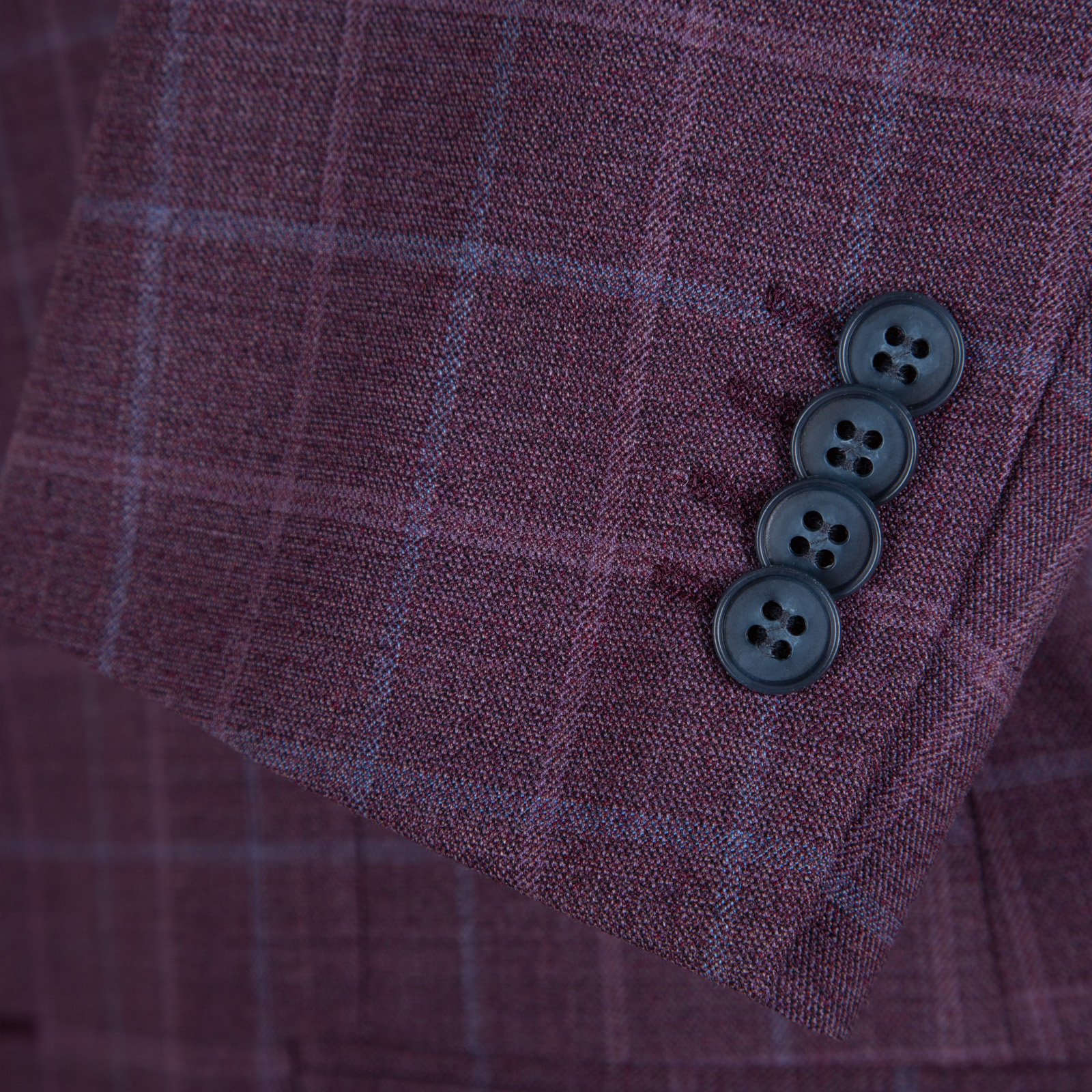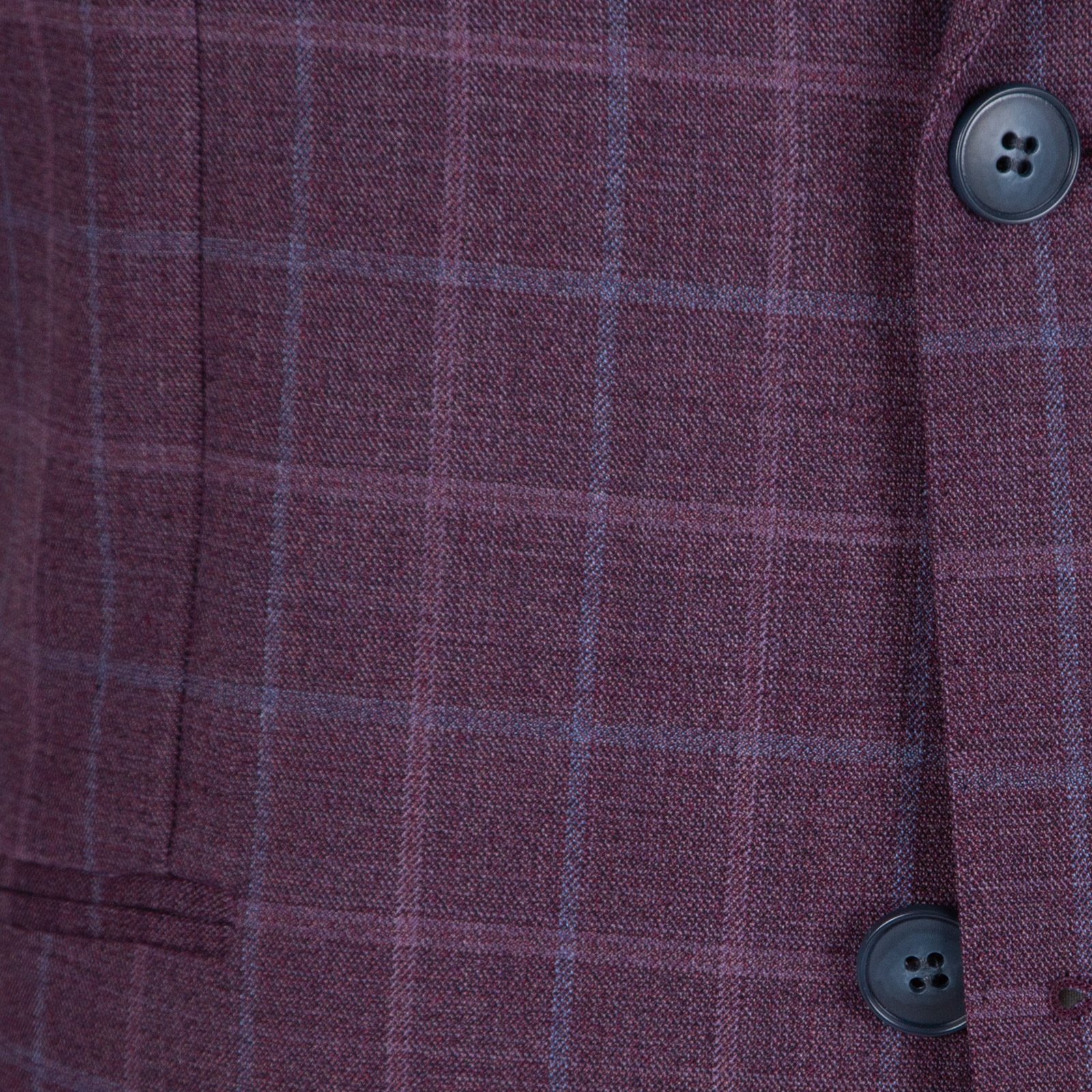 This distinctive stretch wool blend check suit makes a bold statement. Fully lined with colourful highlight lining, internal pockets and double vents.